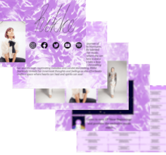 The EPK or (Electronic Press Kit) is a multi-page premium promotional resource, containing detailed information about your musical journey, the evolution of your unique sound, and the milestones you’ve achieved as an artist.